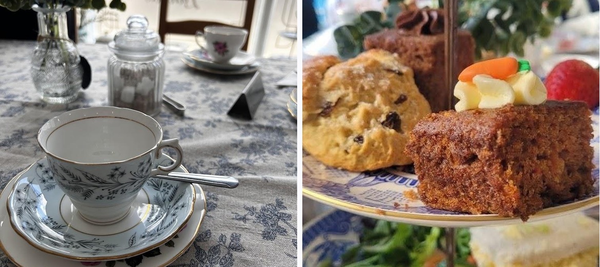 The Bluebell Tea Room exudes a vintage charm, creating a warm, inviting atmosphere perfect for casual gatherings or special occasions.
